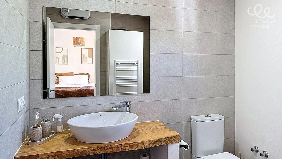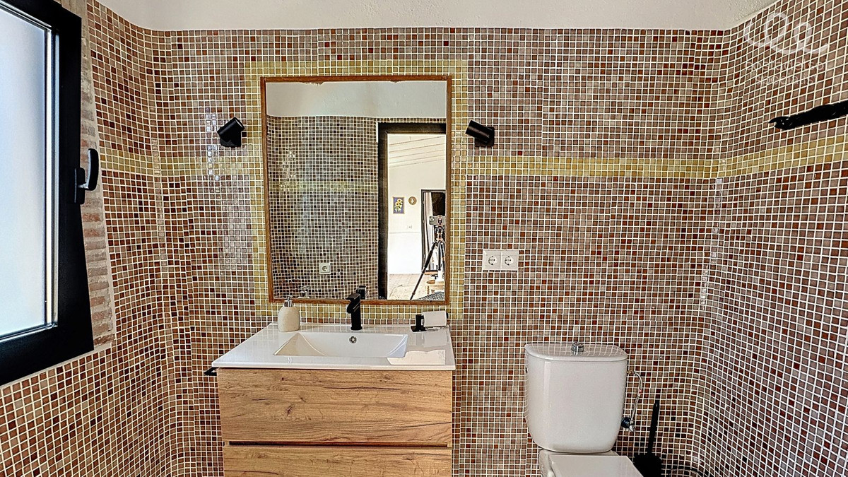 The main house offers a spacious living area, a modern kitchen, and a guest toilet on the ground floor. Upstairs, you'll find three bright bedrooms and a stylish bathroom, all with a layout designed for privacy and comfort. This section of the cortijo has its own entrance and is entirely separate — ideal for full-time living or use as a private retreat.