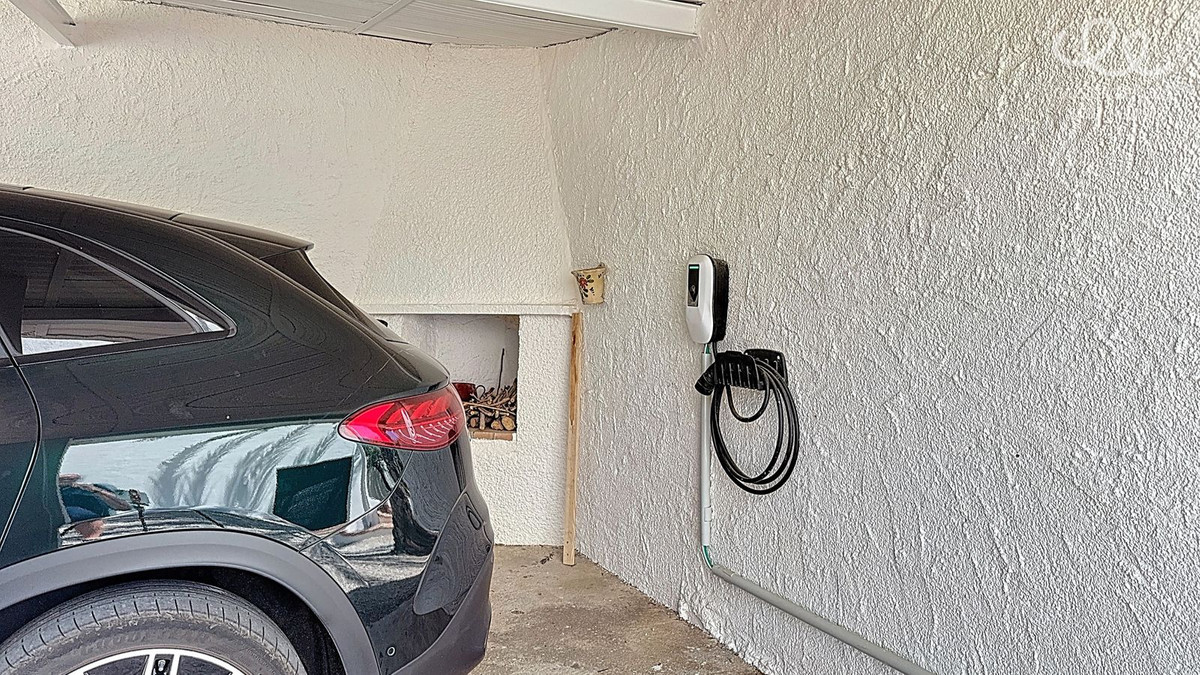 The entire property is securely fenced, with an electric entrance gate, a carport featuring an EV charging point, and a handy storage shed. Renovated with care and attention to quality, it features modern finishes such as black aluminium window frames, air conditioning, and double glazing throughout.