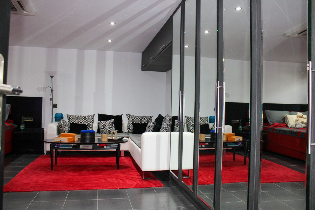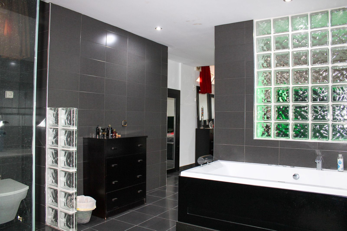 We go down the stairs with the beautifully decorated wrought iron railing, to three bedrooms and two bathrooms. One of the bedrooms has its own bathroom and there is also access to the house's natural meeting place, the large terrace with private pool. There is also a fully equipped modern kitchen, as well as a washing machine and dryer. The terrace can also be accessed from the private parking, which is located at the entrance to the house.