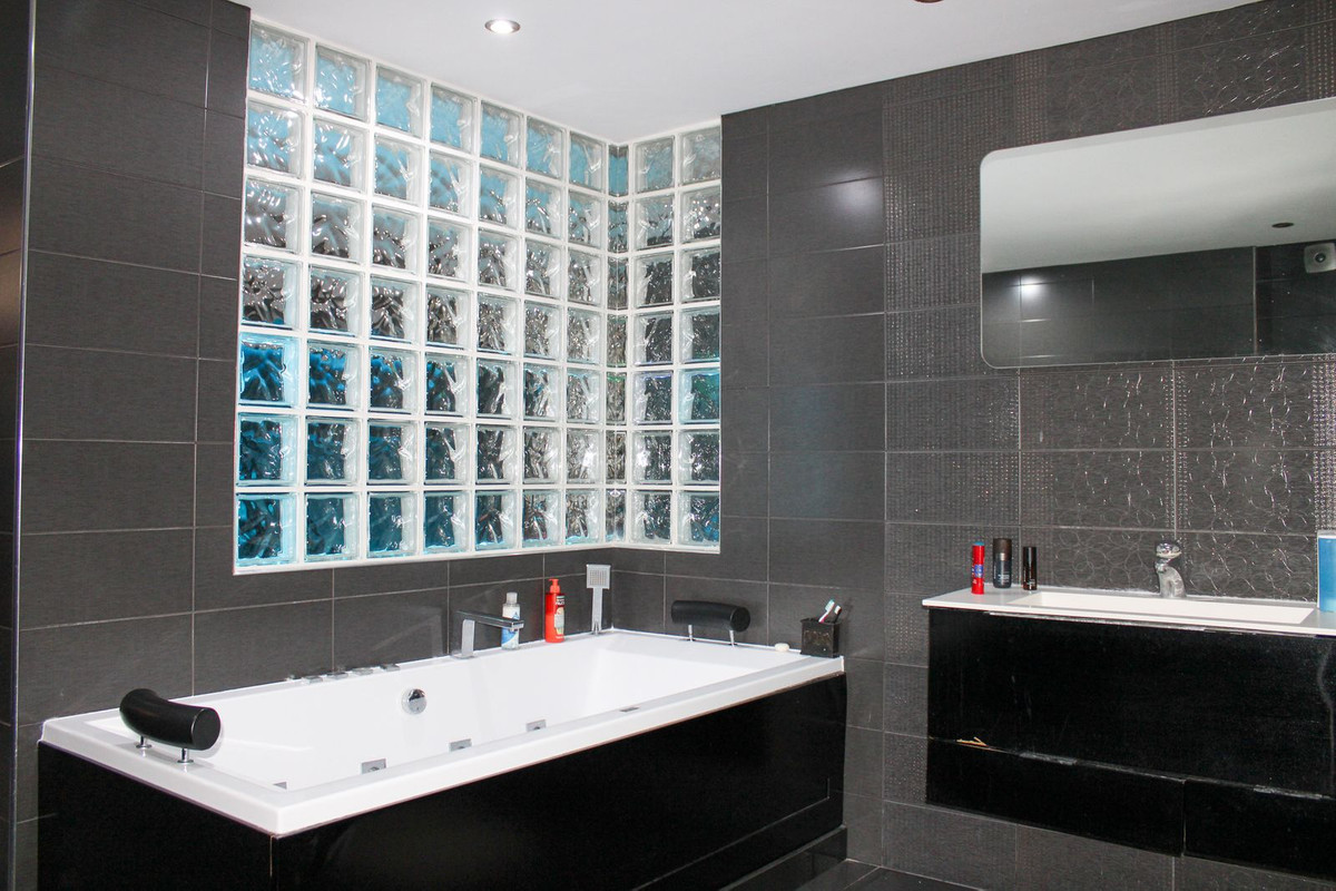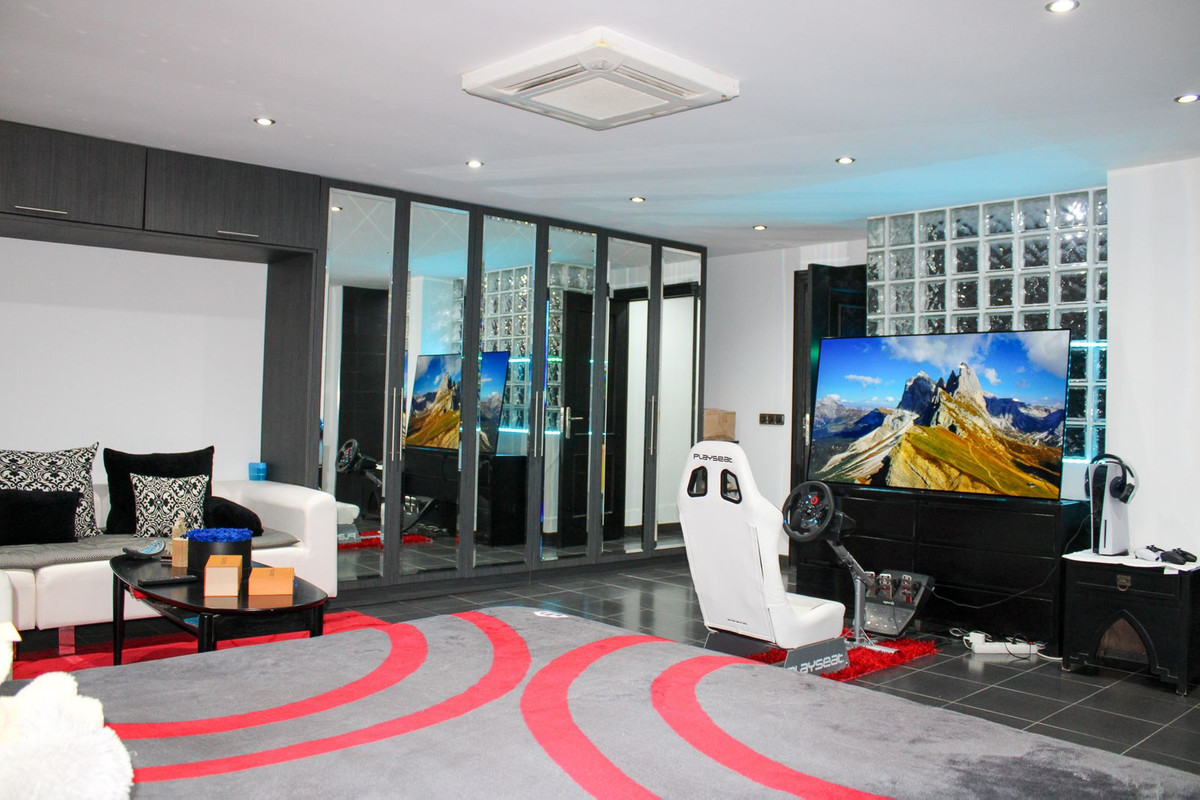 We continue down to the basement, where we find a large bedroom with jacuzzi and shower. There is also a good-sized storage room. This house must be seen, plenty of space for the large family.