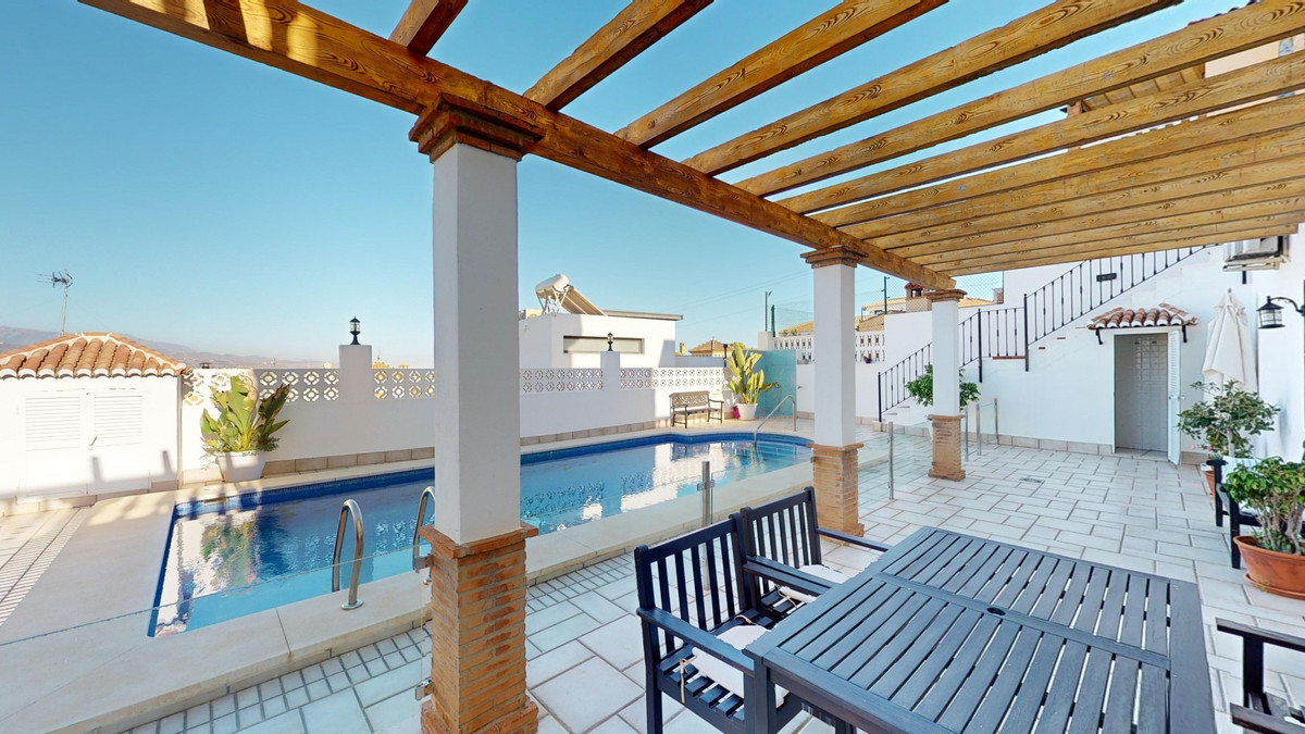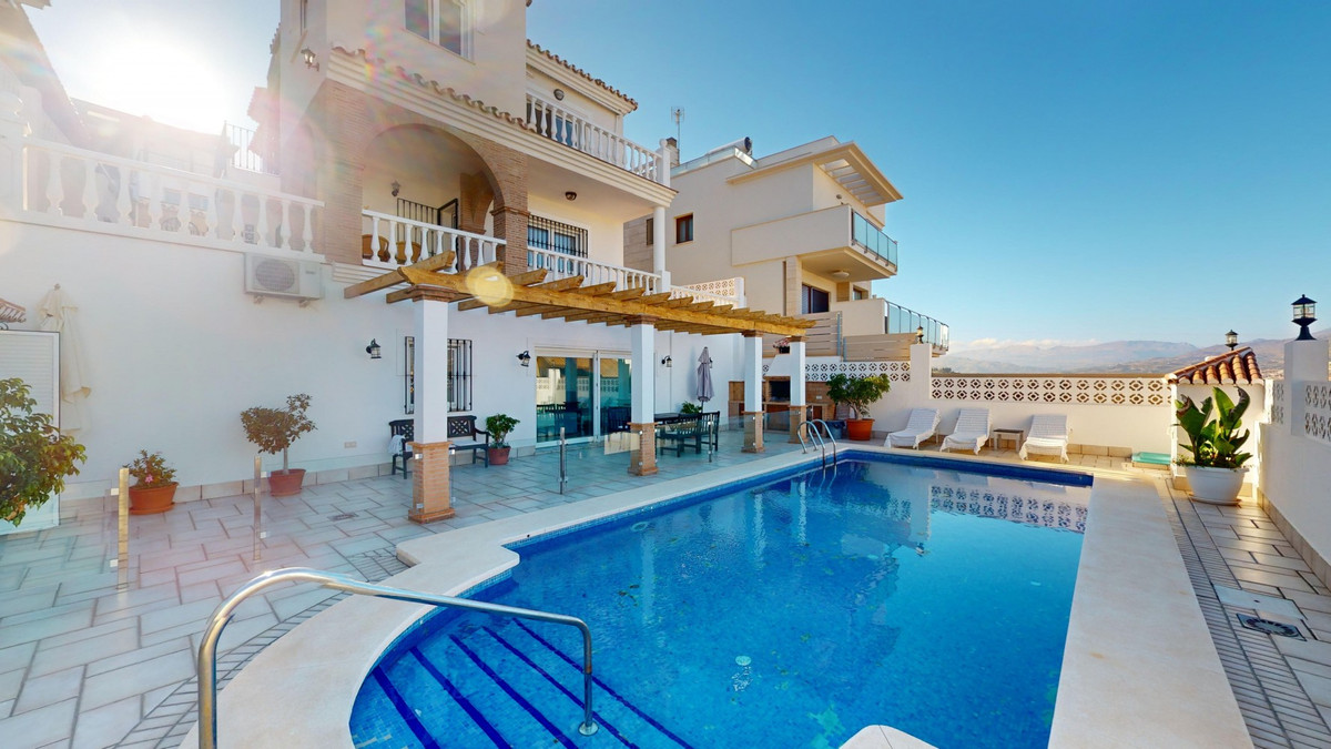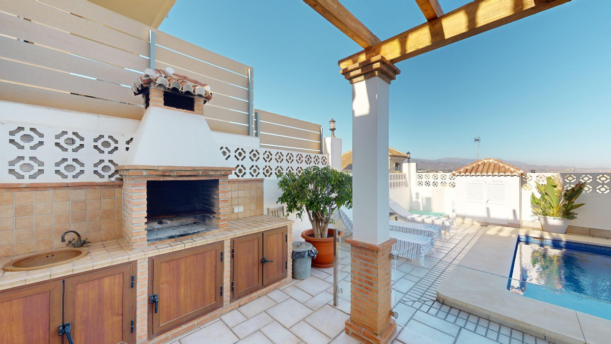 Discover your dream Mediterranean lifestyle in this exquisite 3-bedroom, 4-bathroom haven nestled in a private, gated community in Torre del Mar, where tranquility and security are paramount. This exclusive urbanization with only a few neighboring residences ensures privacy and peace, just minutes from the vibrant center of Torre del Mar and only 5 minutes from its stunning beaches. Spanning three sunlit floors and covering 204 square meters, this masterpiece seamlessly blends modern luxury with traditional Spanish charm. Step into a world of elegance, where rustic wooden beams adorn high ceilings, creating an ambiance of warmth and sophistication. The open-concept living and dining area invites you to relax and entertain, filled with natural light streaming through large windows offering tantalizing views of the lush surroundings. The gourmet kitchen is a culinary enthusiast's dream, featuring sleek wooden cabinetry, premium granite countertops, and state-of-the-art appliances, with large windows offering a scenic backdrop. The tranquil primary bedroom, a spacious 16 m2 sanctuary, combines style and comfort, while six luxurious bathroomsincluding one with turquoise accentsprovide spa-like relaxation at home. Designed for discerning buyers, the house offers a perfect blend of aesthetics and functionality, including a laundry room and ample storage spaces for comfortable living. Enjoy seamless indoor-outdoor living with multiple spaces to bask in the renowned Spanish sun, perfect for entertaining or quiet moments alike. Located just a short drive from Torre del Mars bustling promenade, this property offers the ideal blend of peaceful living and easy access to local amenities, including shops, cafes, and restaurants. Torre del Mar is a vibrant coastal town known for its beautiful beaches, charming seaside atmosphere, and excellent dining options. Embrace the Mediterranean lifestyle and make this stunning home your personal paradise. We are pleased to be able to present this dream property to you soon, either personally or via virtual viewing. Because this world is uniquejust like our Axarquía. In Andalusia. On the Costa del Sol. Here, on the sunny side of life...