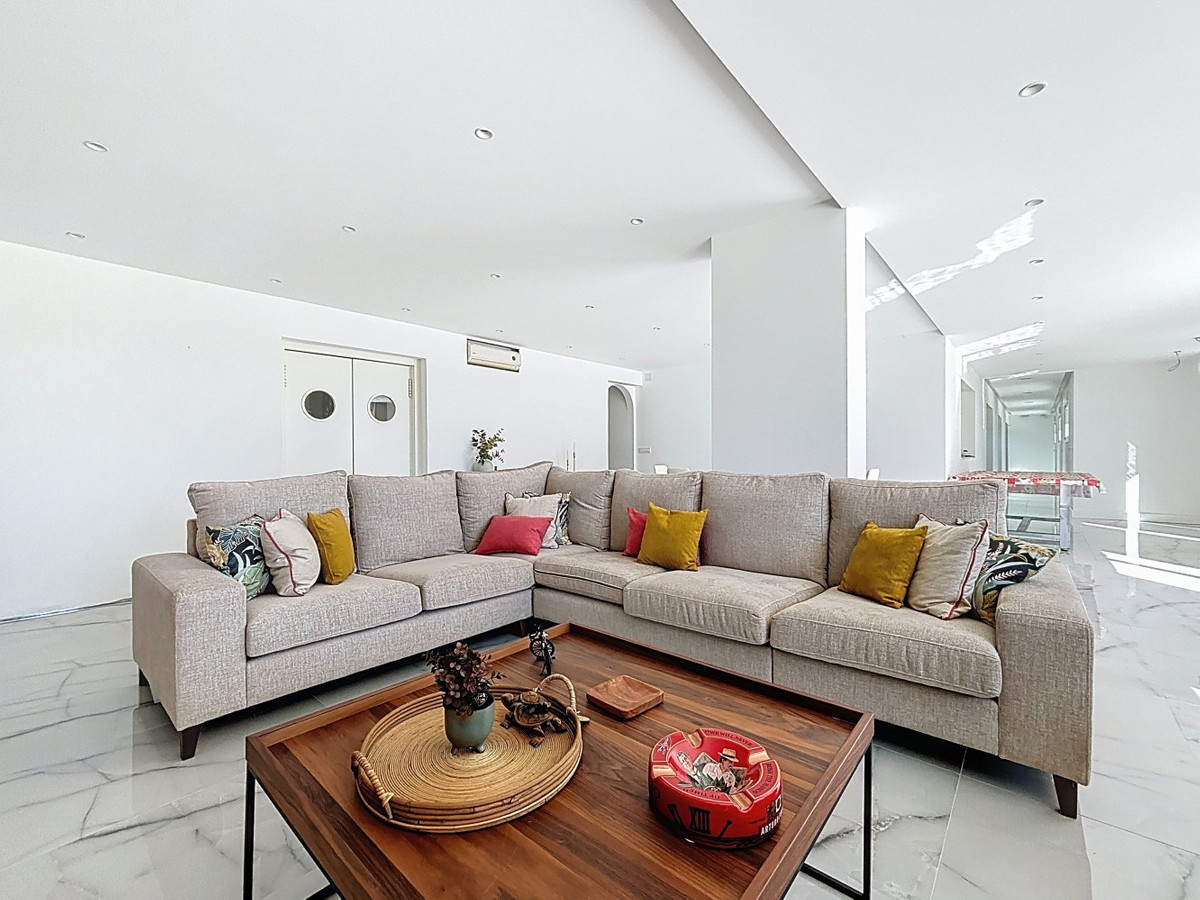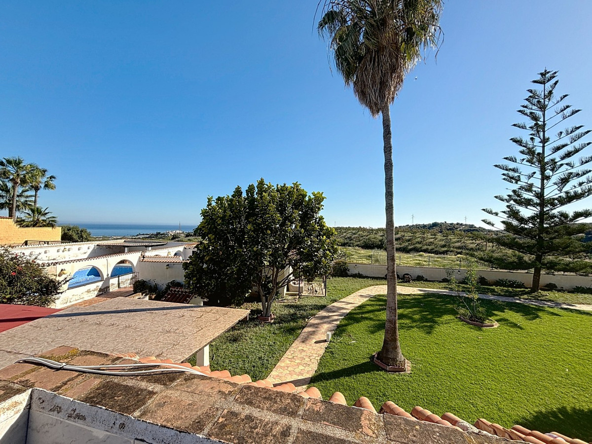 This villa in Almayate stands out for its spaciousness, versatility and excellent possibilities both as a family home and as an investment. The property has a large garden with a private pool and a cosy guest house, offering an ideal setting to enjoy the outdoors and the Mediterranean climate. The main house is distributed over two floors, each with a separate entrance. On the ground floor, completely renovated in a modern style, we find 4 bedrooms, 3 of them with en-suite bathrooms (currently to be finished), an office, a full bathroom, a toilet, a spacious living room and a functional kitchen. The upper floor has 2 bedrooms and 2 bathrooms, as well as a terrace from which you can enjoy beautiful views of the sea. This level also offers the possibility of further building, further expanding the potential of the house. The guest house, located in the garden, is equipped with a bedroom, bathroom, living room and kitchen, ideal for visitors or for holiday rental. Below the main house there is an additional floor that can be flexibly fitted out as a living space or for various uses, which adds even more possibilities to the property. In addition, the property has two garages and enough outdoor space to park several vehicles comfortably. In addition to all this, there is an independent plot of 2,300 m2 with fruit trees, which provides additional value both for private use and for agricultural or leisure projects. Due to its characteristics and layout, the villa offers great potential for tourist rental type B&B, which makes it a very attractive opportunity both to live in and to invest. We are delighted to be able to present this property to you soon, either personally or via virtual viewing. Because this world is unique - like our Axarquía. In Andalusia. On the Costa del Sol. Here, on the sunny side of life...