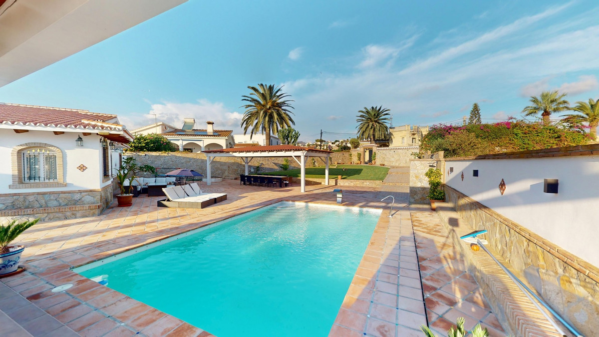 Independent house, Caleta de Vélez boasts of being the most important fishing port in the province of Malaga. You can walk along the pier and see how the fishermen prepare their fising nets and, at dawn, enjoy watching the fishing boats come in to arrive with their catch. Along the promenade there are restaurants and bars where you can taste typical dishes and fresh fish from the area. It also has a marina for recreational boats. If you wish to have one, it would be almost on your doorstep. From the port you can walk to Torre del Mar by one of the best promenades in Spain. In the town there are all kinds of shops, and on Saturday mornings the market is set up, where you can find typical ceramics, clothing, fruit and artisan foods from the region. Less than ten minutes walk to the port is this fantastic property. It has a huge plot in which the house has the particularity of being on one of the corners, so the exterior space is very well utilised. A large swimming pool, where the sun shines throughout the whole day, together with a beautiful wood gazzebo with a table for eight or ten and a built-in barbecue, will create unforgettable moments with family and friends. Entering the house, to the right of the hall, is a bedroom that is used as an office. On the left you enter a spacious living room with a fireplace and one of the bedrooms; the other is opposite the main door. The two bedrooms are spacious and each one has its ensuite bathroom and a large dressing room. From the living room there is access to a kitchen, very bright and modern, with the highest quality appliances. From the kitchen you can exit to the back of the house where the laundry room is and a bathroom for outdoor use. The ground floor consists of two rooms. One is a television and games room, and the other one is a music room. On this floor there is also a bathroom. It has an independent street exit, to a private outdoor parking, apart from the two garages. The qualities used in this house are exceptional. The floors, the doors, the marble, the tyles ... everything is the best that the market has to offer. There is the possibility of building a third floor. If you would like more information, please contact us. Caleta de Vélez boasts of being the most important fishing port in the province of Malaga. You can walk along the pier and see how the fishermen prepare their fising nets and, at dawn, enjoy watching the fishing boats come in to arrive with their catch. Along the promenade there are restaurants and bars where you can taste typical dishes and fresh fish from the area. It also has a marina for recreational boats. If you wish to have one, it would be almost on your doorstep. From the port you can walk to Torre del Mar by one of the best promenades in Spain. In the town there are all kinds of shops, and on Saturday mornings the market is set up, where you can find typical ceramics, clothing, fruit and artisan foods from the region. Less than ten minutes walk to the port is this fantastic property. It has a huge plot in which the house has the particularity of being on one of the corners, so the exterior space is very well utilised. A large swimming pool, where the sun shines throughout the whole day, together with a beautiful wood gazzebo with a table for eight or ten and a built-in barbecue, will create unforgettable moments with family and friends. Entering the house, to the right of the hall, is a bedroom that is used as an office. On the left you enter a spacious living room with a fireplace and one of the bedrooms; the other is opposite the main door. The two bedrooms are spacious and each one has its ensuite bathroom and a large dressing room. From the living room there is access to a kitchen, very bright and modern, with the highest quality appliances. From the kitchen you can exit to the back of the house where the laundry room is and a bathroom for outdoor use. The ground floor consists of two rooms. One is a television and games room, and the other one is a music room. On this floor there is also a bathroom. It has an independent street exit, to a private outdoor parking, apart from the two garages. The qualities used in this house are exceptional. The floors, the doors, the marble, the tyles ... everything is the best that the market has to offer. There is the possibility of building a third floor. If you would like more information, please contact us.