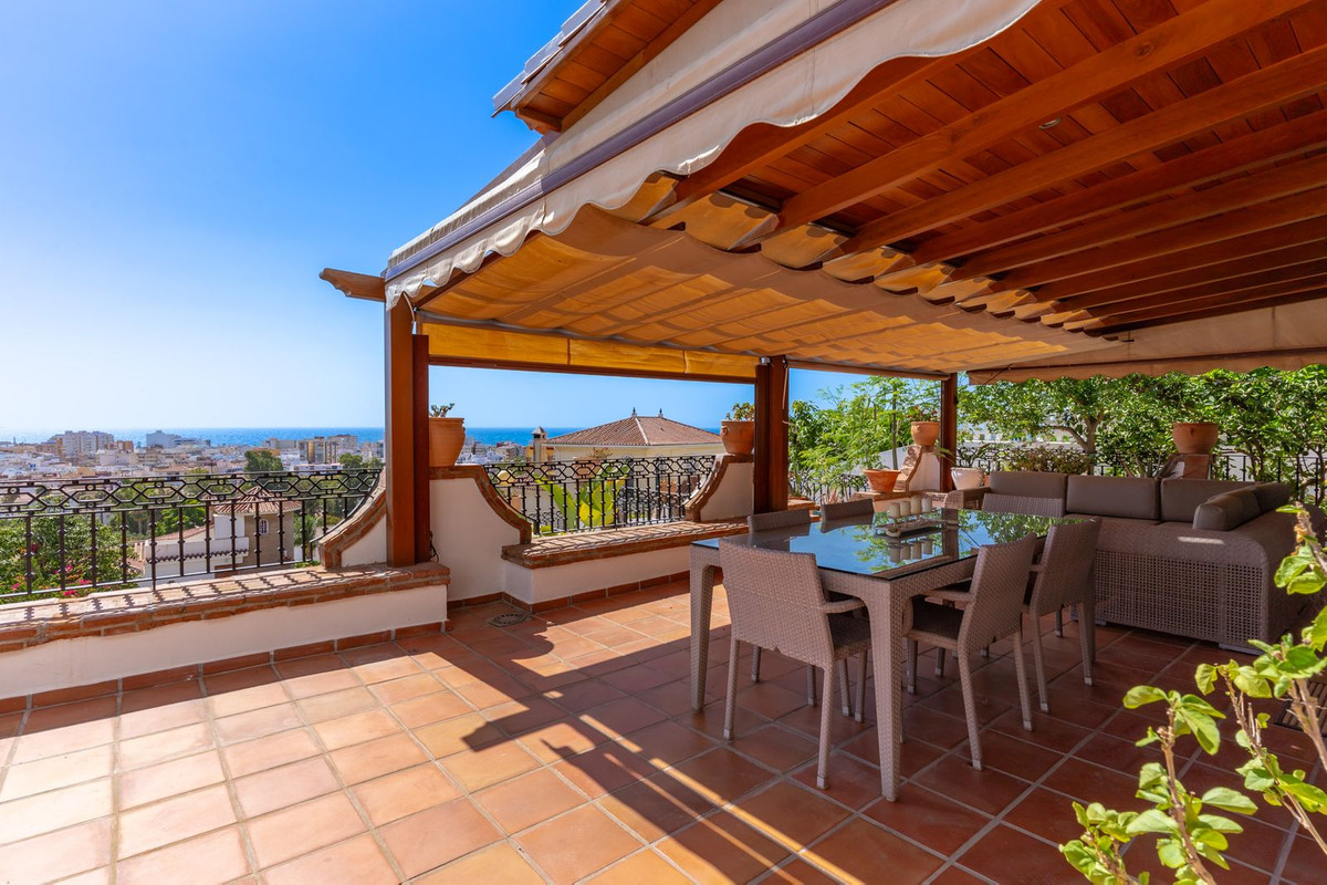 Nestled in the most exclusive urbanización of Torre del Mar, this beautiful Andalusian-style villa offers the perfect blend of charm, comfort, and investment potential. Just a short stroll from the vibrant town centre and sandy beaches, the property boasts panoramic sea views, separate guest accommodation, and the flexibility to serve as a luxurious family home or high-yield rental opportunity.