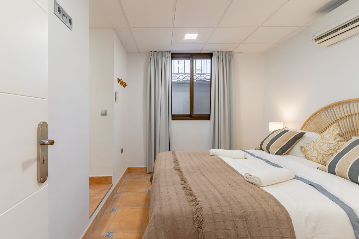 Inside, the main level features a spacious living and dining area filled with natural light, a fully fitted kitchen, and three bedrooms—two of which have en-suite bathrooms. From the living area, step into a stunning Andalusian-style courtyard, complete with a tranquil fountain—an idyllic spot to unwind.