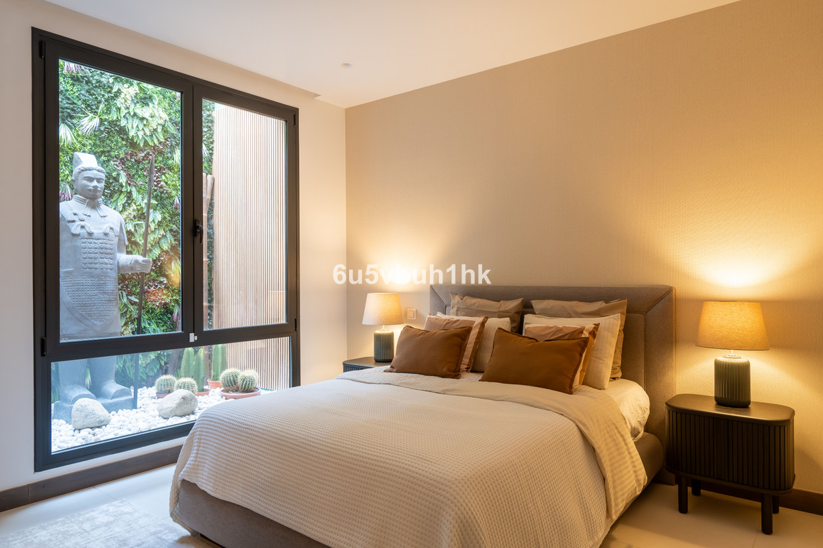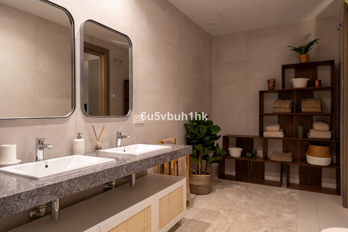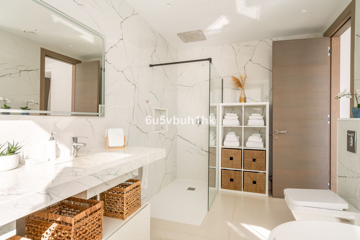 Upstairs, you’ll find two elegant bedroom suites, including a spectacular master bedroom with a luxurious en-suite bathroom, generous space, and its own private terrace. The floor also offers a wrap-around terrace with panoramic sea views, making it the perfect spot to enjoy Marbella’s golden sunrises.