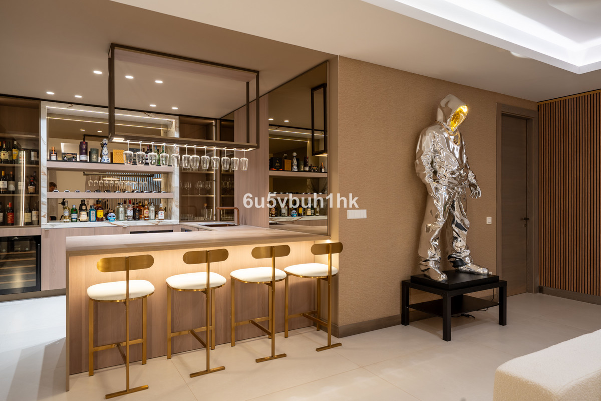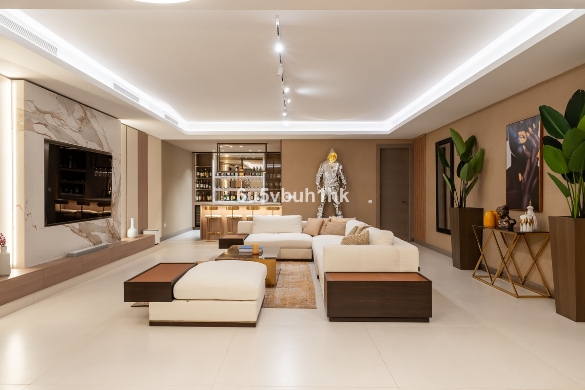 The lower level is designed for leisure and entertainment, featuring a stylish bar area, a comfortable lounge and movie theatre, and two spacious bedrooms, each with its own en-suite bathroom, perfect for family or guests.
