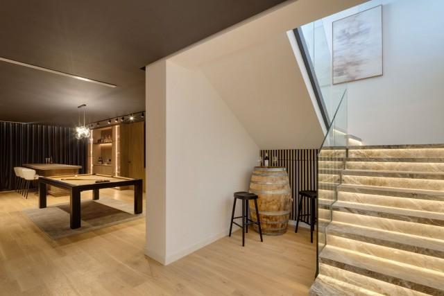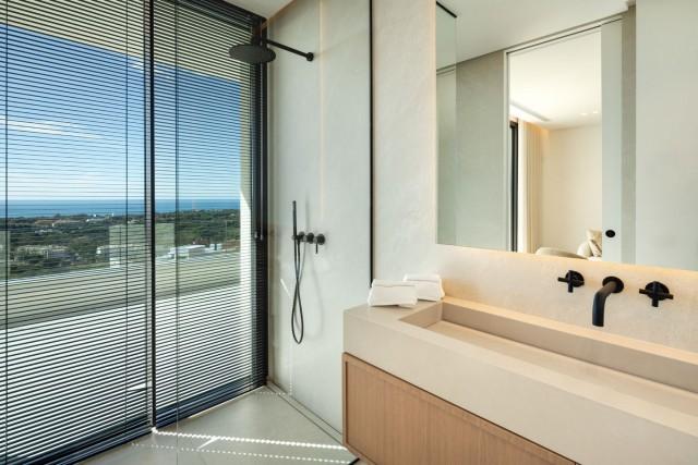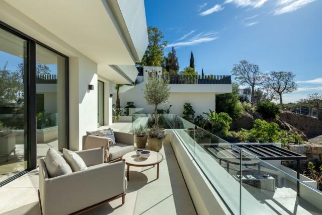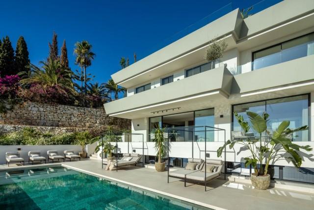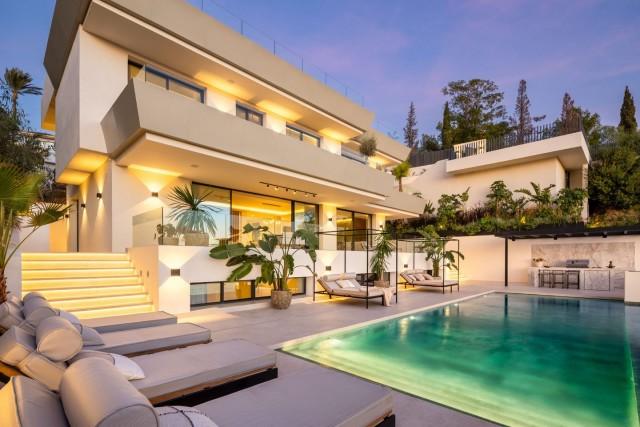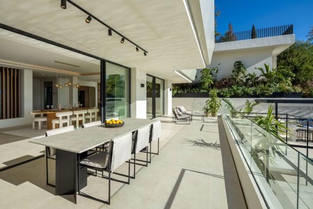 This spectacular newly built villa, located in the prestigious Elviria area of Marbella East, stands out for its contemporary architecture, designed by Francisco Martínez Galván and developed by Homerun Developments. With 454 m² of interior space and 621 m² of terraces, the property offers a modern living concept that integrates luxury, spaciousness, and functionality. Distributed over three floors, it features five en-suite bedrooms, four additional bathrooms, and two guest toilets, all finished with high-quality materials and premium equipment from brands such as Gaggenau and Siemens.