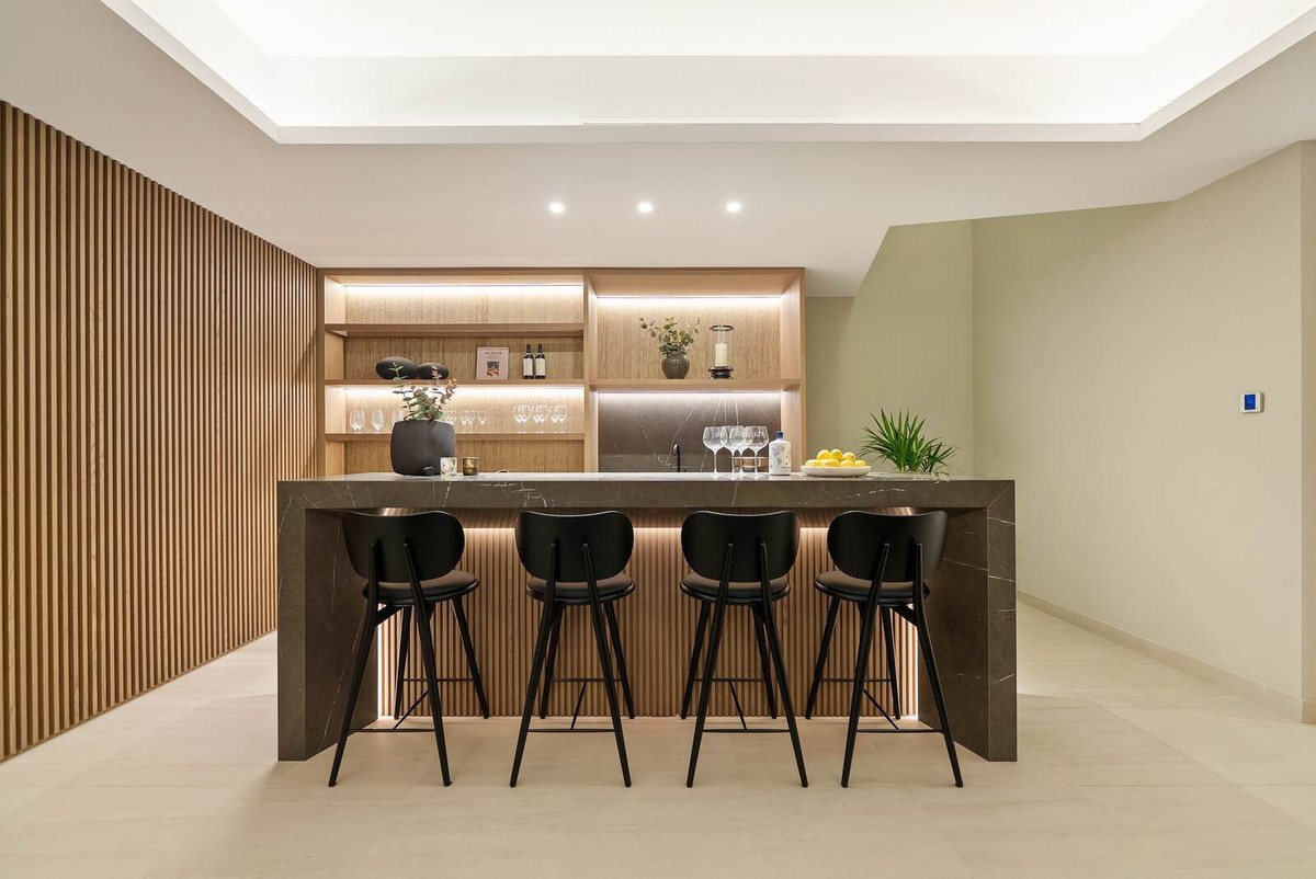 This architectural masterpiece impresses with its bold geometric lines, sophisticated design, and harmonious use of high end quality materials in neutral tones. Thoughtfully configured with four spacious en-suite bedrooms, the villa offers flexibility to adapt seamlessly to your lifestyle needs.