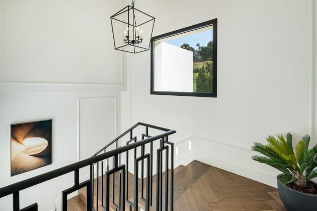 Esta impresionante villa moderna, situada en el corazón de Nueva Andalucía, destaca por su diseño contemporáneo del reconocido arquitecto Francisco Martínez Galván y por su excepcional calidad de construcción. Distribuida en tres niveles, ofrece seis dormitorios y cinco baños, organizados para maximizar la luz, el espacio y la privacidad. La planta principal integra una cocina de alta gama con electrodomésticos Siemens, un amplio comedor y un luminoso salón con acceso directo a terrazas exteriores. La suite principal ocupa toda la planta superior, con vestidor, elegante baño y dos terrazas privadas con vistas al mar y acceso a un jacuzzi.