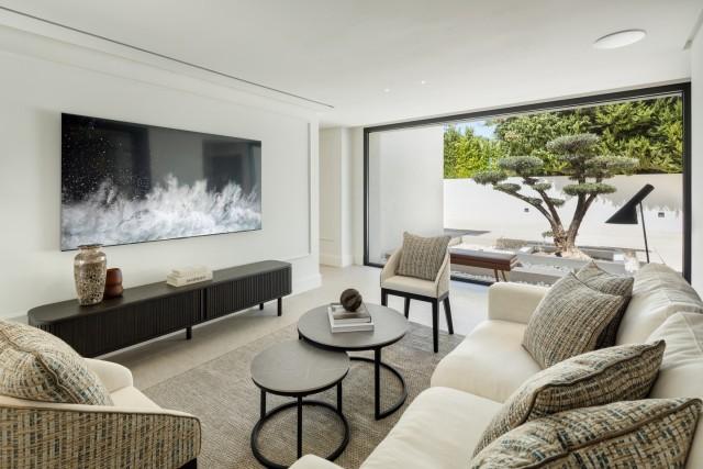 El nivel inferior está dedicado al bienestar y el entretenimiento, con piscina interior, gimnasio, sauna de vapor, bodega climatizada y sala multimedia insonorizada con bar. En el exterior, la villa ofrece jardines paisajísticos, varias terrazas, zona de barbacoa, pista de petanca y una innovadora piscina de agua salada. Ubicada en el prestigioso Golf Valley, disfruta de proximidad a campos de golf, restaurantes, colegios internacionales y Puerto Banús