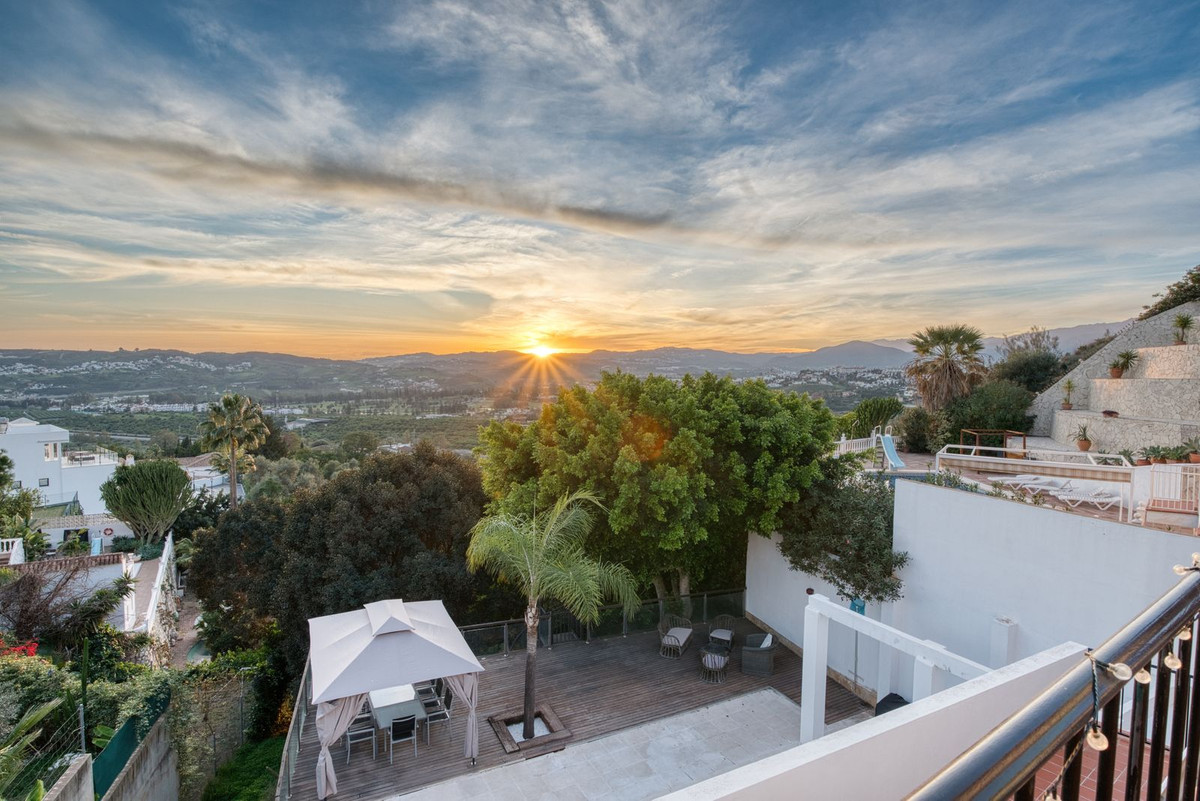 Welcome to this stunning south-facing villa nestled in the prestigious Urb La Sierrezuela on the sun-kissed Costa del Sol. This luxurious 5-bedroom villa has been recently renovated, offering modern comforts and breathtaking panoramic views that extend across three levels: two expansive terraces and a private swimming pool and deck.