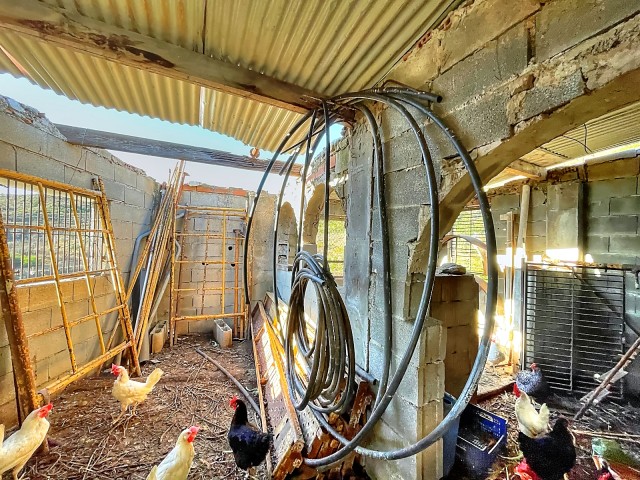 It has a closed garage and, on the lower floor, several buildings currently used for storage and as a chicken coop, ideal for expanding uses or transforming them according to your needs.