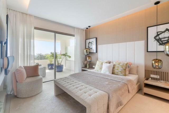 This impressive contemporary villa is located in the heart of Nueva Andalucía, within an exclusive gated community renowned for its state-of-the-art security system, ensuring a truly private living environment. Designed with bold geometric lines and natural materials in neutral tones, the property offers three spacious en-suite bedrooms, with the option to create a fourth bedroom if desired. Distributed across four levels connected by a private elevator, it seamlessly blends indoor and outdoor living, featuring a generous covered terrace and a spectacular rooftop solarium with a private plunge pool boasting panoramic views over the Golf Valley and La Concha mountain.