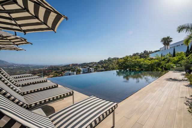 This exceptional residence in La Mairena stands out for its unique design, created to maximize views of the sea, mountains, and the surrounding natural environment. Distributed over three levels, the home offers a constant connection with the outdoors thanks to large floor-to-ceiling windows and an architecture that prioritizes light and spaciousness. The entrance level houses a spacious living room and several bedrooms facing the Mediterranean landscape. The middle level constitutes the main living area, with an open-plan kitchen and pantry that flows into the dining and living areas, all with access to a large terrace ideal for al fresco dining.