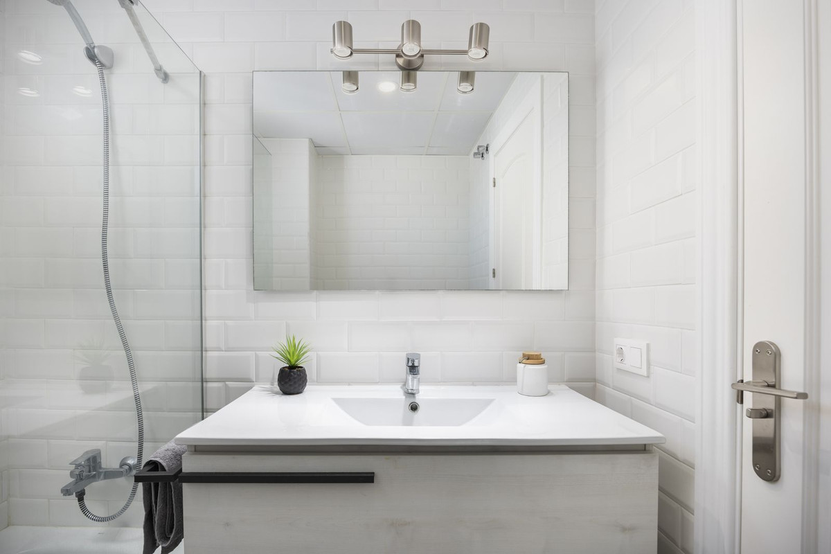 The master bedroom enjoys beautiful sea views, a double bed and a spacious wardrobe, offering a calm and private retreat. The second bedroom is well-proportioned and versatile, furnished with twin beds and direct access to a secondary terrace—ideal for guests or remote working.