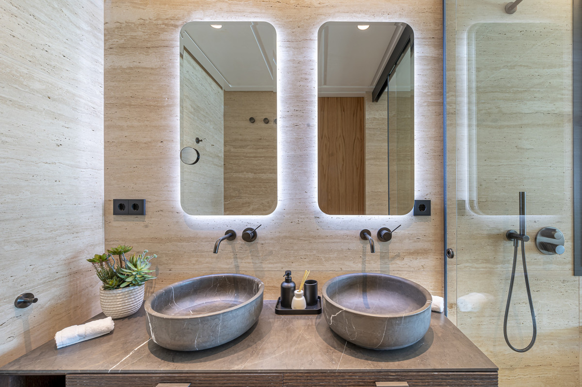 The expansive 120m² terrace with outdoor kitchen, hot tub, is a standout feature, offering both covered and uncovered areas to enjoy the Mediterranean climate. Residents can indulge in a private pool, a jacuzzi, and a sauna, all complemented by access to a communal indoor pool and a fully equipped gym. The gated community provides 24-hour security with surveillance cameras and video entrance systems, ensuring peace of mind. Modern conveniences such as domotic home intelligence, electric blinds, fibre-optic internet, satellite TV, and fitted wardrobes further enhance the living experience.