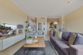 This penthouse, situated on the top floor, is accessible via an elegant entrance hallway that leads into a large, square living room. This expansive space includes both dining and sitting areas, complemented by a charming open fireplace. Direct access to the generous terrace enhances the living area, offering the perfect space for relaxation and al fresco dining, all while enjoying those captivating coastal views.