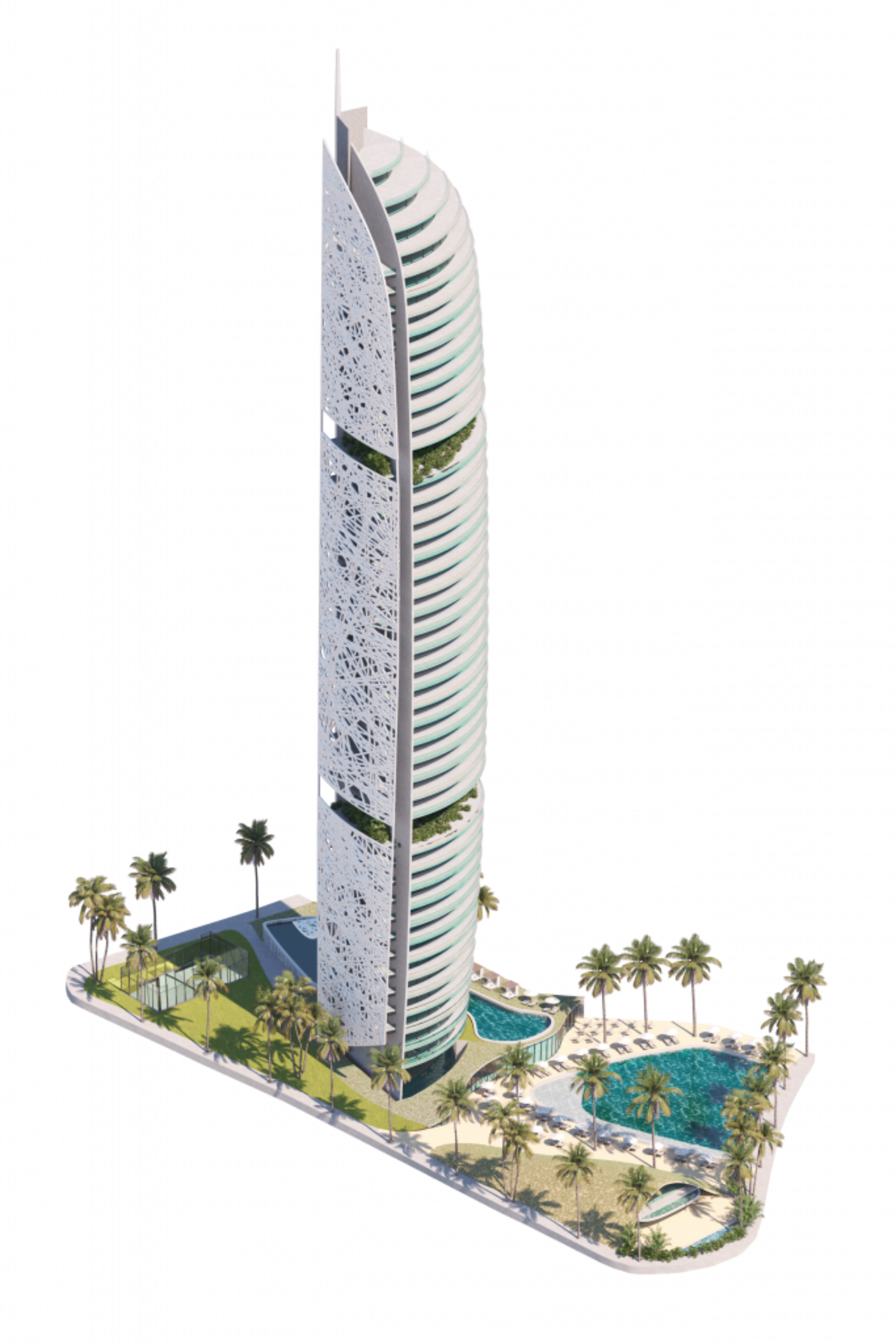 More than 44 floors, 158 meters high, more than 200 apartments and an exclusive hotel, on the last piece of land that will have direct views of the Poniente beach. Located on the plot of the historic Gran Hotel Delfin.